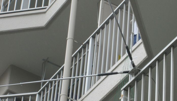 ベランダの手すり等の横パイプに水平に突き出すように取り付けられますので、マンションの