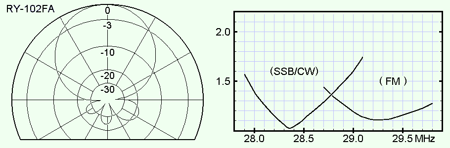 (※ ビームパターンは、28MHz における 水平偏波水平面 です。)
