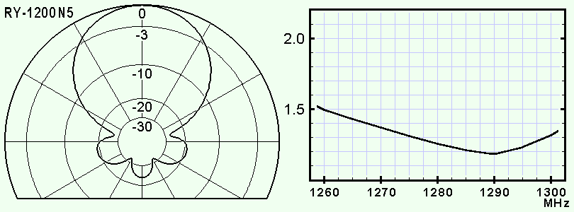 < ビームパターンは、1,280MHz における 垂直偏波・水平面 です >