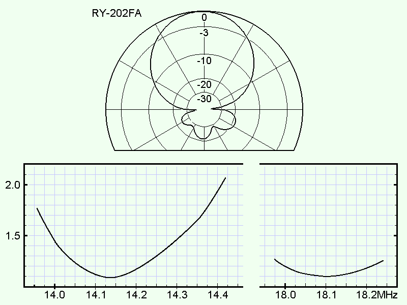 (※ ビームパターンは、14MHz における 水平偏波水平面 です。)